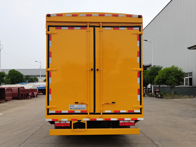 其它:該車(chē)主要專(zhuān)用裝置有遠(yuǎn)程供排水泵,用于應(yīng)急供排水搶險(xiǎn)作業(yè).車(chē)廂頂部封閉不可開(kāi)啟.側(cè)防護(hù)由車(chē)身結(jié)構(gòu)代替,后防護(hù)材料為Q235,焊接連接,截面尺寸(mm):140×80,下邊緣離地高度410mm.僅選用軸距3800mm.隨底盤(pán)選裝駕駛室.ABS型號(hào)/生產(chǎn)廠家:ABS/ASR-24V-4S/4M/襄陽(yáng)東風(fēng)隆誠(chéng)機(jī)械有限責(zé)任公司.隨底盤(pán)選裝限速裝置,限速89km/h.