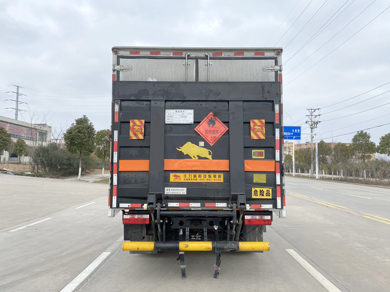 | 其它: | 1、該車適用于運(yùn)輸危險品,運(yùn)輸具有獨(dú)立容器(瓶)包裝的物品,運(yùn)送危險物品類項號:3。廂體頂部封閉,不可開啟。2、側(cè)、后防護(hù)材料均為Q235,螺栓連接,后防護(hù)截面尺寸(mm)φ125,下邊緣離地高460mm。選裝后部無尾板,選裝后部無尾板時后防護(hù)材料為Q235,焊接,截面尺寸(mm)100×50,下邊緣離地高460mm。3、僅選用排氣管前置、限速裝置(限速80km/h)、前輪盤式制動及子午線輪胎的底盤,轉(zhuǎn)向輪安裝輪胎爆胎應(yīng)急防護(hù)裝置。安裝帶有衛(wèi)星定位功能的行駛記錄儀。ABS系統(tǒng)控制器型號/生產(chǎn)廠家: ABS/ASR-24V-4S/4M/襄陽東風(fēng)隆誠機(jī)械有限責(zé)任公司。發(fā)動機(jī)/油耗值(L/100km)對應(yīng)關(guān)系為: ZD30D16-6N/17.2,YCY24140-60/16.5, NV30-C6G/17.3, CY4SK261/17.4, YCY30165-60/17.5, CY4BK361/17.9。選裝ETC。隨底盤選裝駕駛室。廂體側(cè)面選裝開門型式及位置,選裝不帶側(cè)開門,選裝廂體樣式,廂體側(cè)面板選裝開百葉窗。僅采用軸距3308mm。尾板收起狀態(tài)水平長度為290mm,尾板質(zhì)量為420kg。 | ||