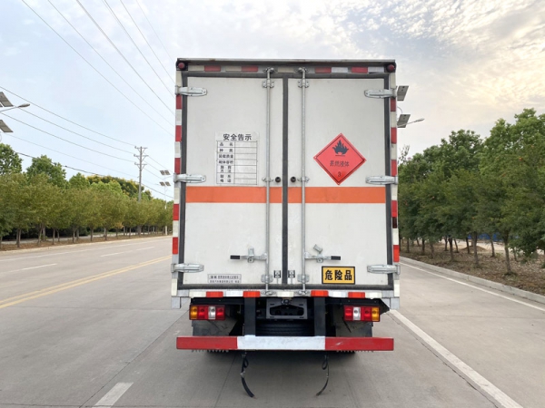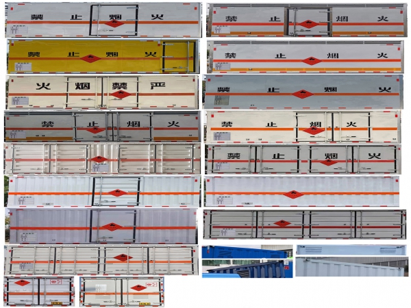 1、復合板工藝:嚴格按照公告尺寸制作。外板采用優(yōu)質(zhì)烤漆板(顏色可選:白,灰,檸檬黃)帶百葉窗,內(nèi)飾為導電性能良好的鋁平板有透氣孔,矩形骨架結(jié)構(gòu)內(nèi)部填充防火阻燃材料,復合加鉚合工藝。廂體四周鋁合金包邊及包角,車廂底板鋪設(shè)防靜電膠皮,廂體前臉50公分高鋪設(shè)防靜電膠皮。后部設(shè)置對開門,右側(cè)單開門,廂體內(nèi)部兩側(cè)安裝捆綁貨物的臥環(huán)。廂體內(nèi)部安裝煙霧報警器,門上安裝防盜報警器。車廂一周粘貼橙色反光帶,箱體粘貼菱形標志牌,安全告示牌,危險品牌,箱體安裝示廓燈(前白后紅),拖地靜電帶。