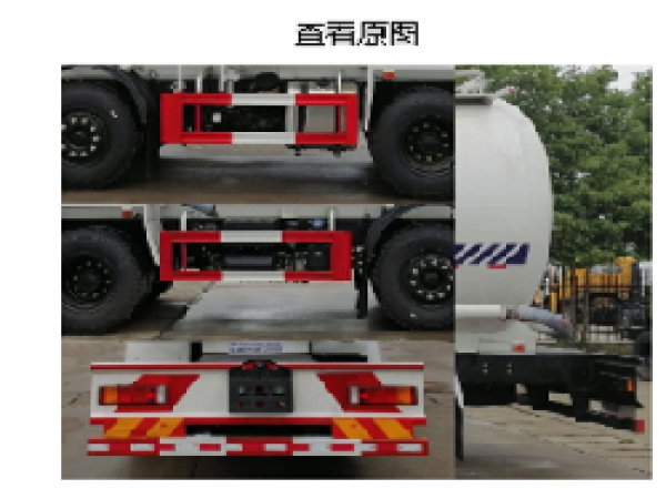 | 其他 | 罐體有效容積:27.6立方米,罐體總長:7400mm(含封頭),罐體外形尺寸(直段長×直徑)(mm):6400×2400。2、側防護采用冷彎型鋼/Q235,螺栓連接;后防護采用冷彎型鋼/Q235,焊接,截面尺寸:50*120mm,下邊緣離地高470mm。 | ||