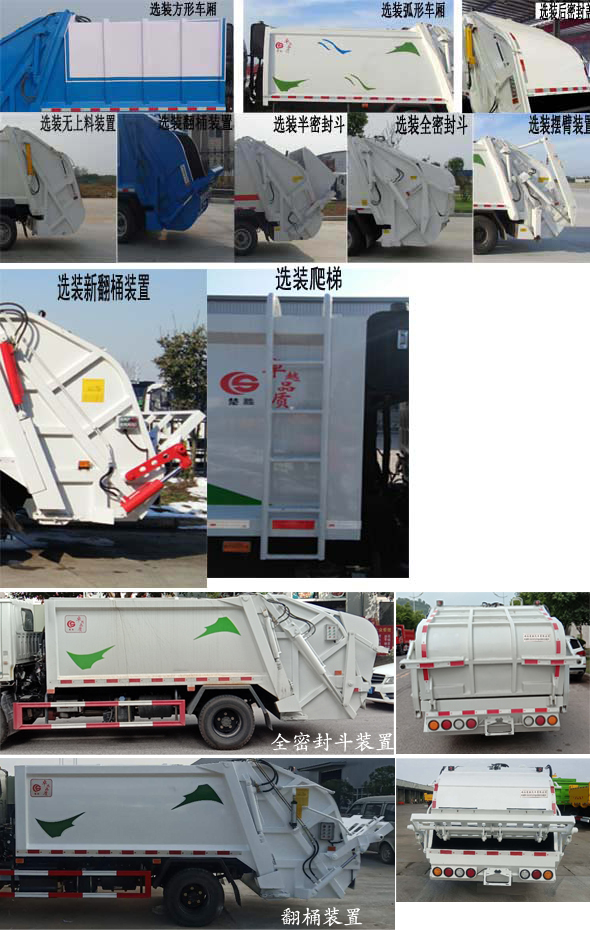 | 配置 | 1、該車主要專用裝置由箱體、壓縮系統(tǒng)組成,用于垃圾的收集與清運(yùn)。該車可選裝方形或弧形箱體,選裝全密封蓋裝置,選裝方形擋泥板,選裝箱體前部爬梯,選裝后部工作裝置。選裝工作裝置時,外形長(mm)/后伸(mm)/整備質(zhì)量(kg)對應(yīng)關(guān)系:①無上料裝置: 6525/-/5530;②擺臂裝置: 6685/160/5850;③全密封斗裝置:6725/200/5850;④翻桶裝置,半密封斗裝置:6925/400/5850。2、側(cè)防護(hù)采用冷彎型鋼/Q235,螺栓連接;后防護(hù)由專用裝置替代,下邊緣離地高500mm。3、ABS系統(tǒng)型號:VIE ABS-II,ABS系統(tǒng)生產(chǎn)廠家:浙江萬安科技股份有限公司。發(fā)動機(jī)JX4D30D6H的油耗值為13.9 L/100km。隨底盤選裝左右車門上方黑色貼膜可選擇取消。選裝輪輞外觀。選裝前臉、前部燈具。該車型可選裝ETC車載裝置. | ||