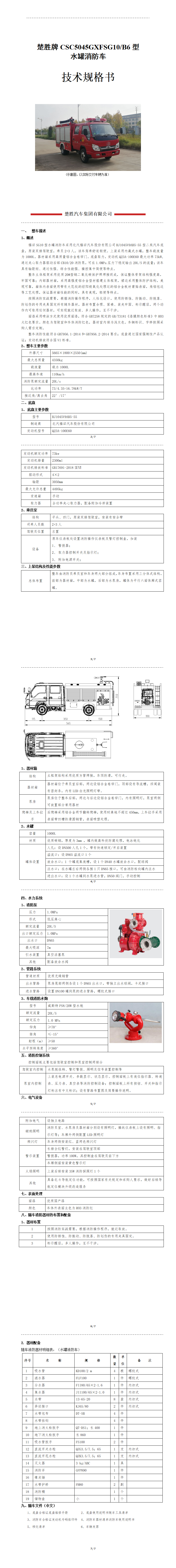 楚勝牌CSC5045GXFSG10/B6型 水罐消防車