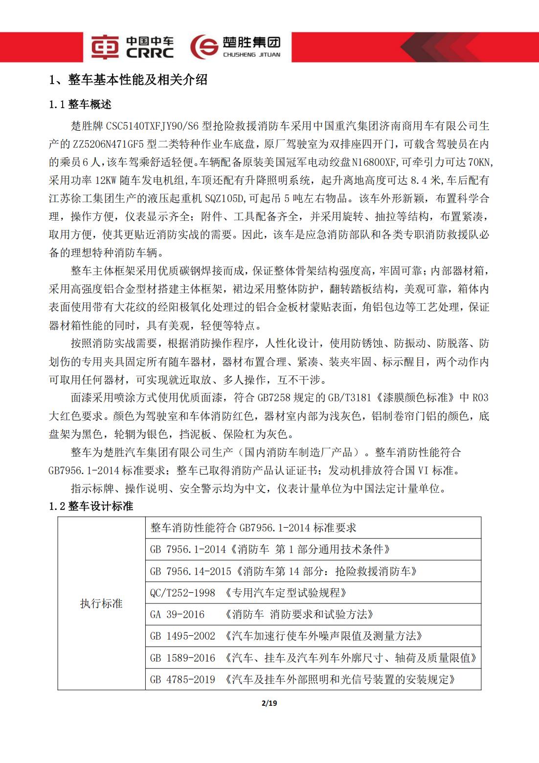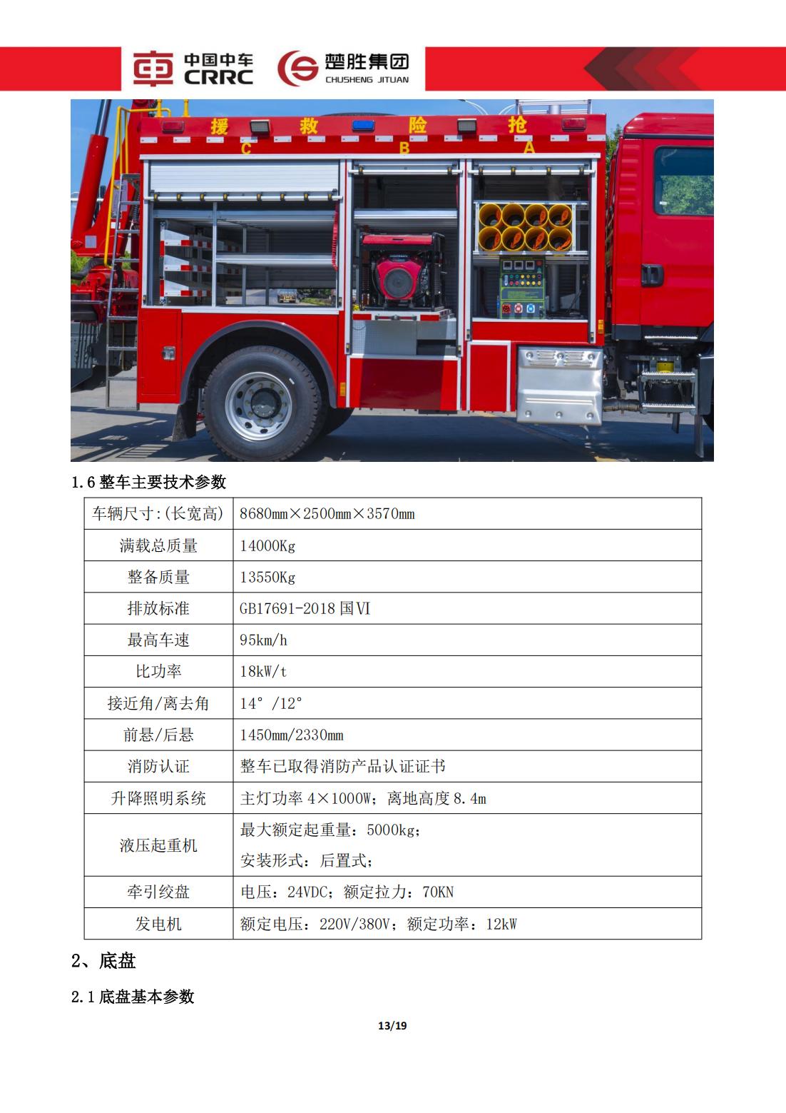 楚勝牌 CSC5140TXFJY90/S6 型 搶險(xiǎn)救援消防車